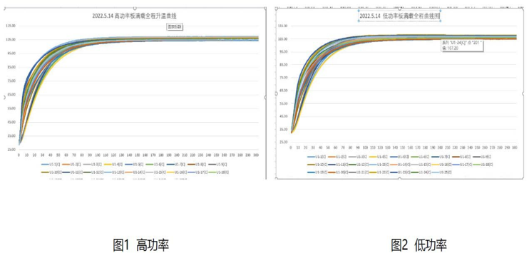 2、在空載極限補償?shù)凸β拾錚ID參數(shù)的情況下,兩功率不同的板:頂部最大溫差:0.40℃,中部最大溫差:0.40℃,底部最大溫差:0.90℃